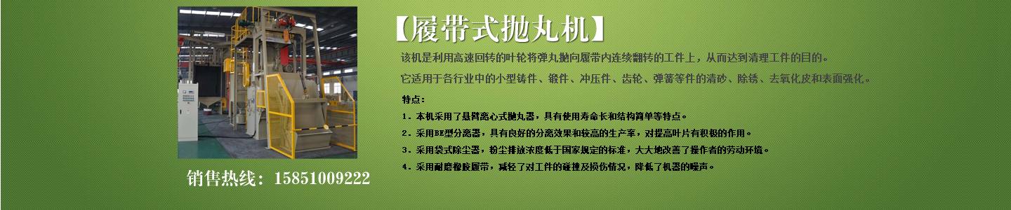 公司主要產(chǎn)品有各種型號(hào)拋丸機(jī)、履帶式拋丸機(jī)、吊鉤式拋丸機(jī)、懸鏈?zhǔn)綊佂铏C(jī)、通過(guò)式拋丸機(jī);各種型號(hào)鑄鋼丸、鋼砂、合金鋼丸、強(qiáng)化鋼丸、不銹鋼丸;噴砂設(shè)備;環(huán)保除塵設(shè)備;鑄造設(shè)備;高效拋丸器;各種型號(hào)拋丸機(jī)配件等,并可根據(jù)用戶產(chǎn)品及產(chǎn)量需求設(shè)計(jì)符合要求的拋丸機(jī);本公司產(chǎn)品從設(shè)計(jì)、開(kāi)發(fā)、生產(chǎn)到服務(wù),全過(guò)程實(shí)行監(jiān)控,其產(chǎn)品在全方位立體的營(yíng)銷(xiāo)服務(wù)網(wǎng)絡(luò)中,遍布全國(guó)各省市區(qū)。